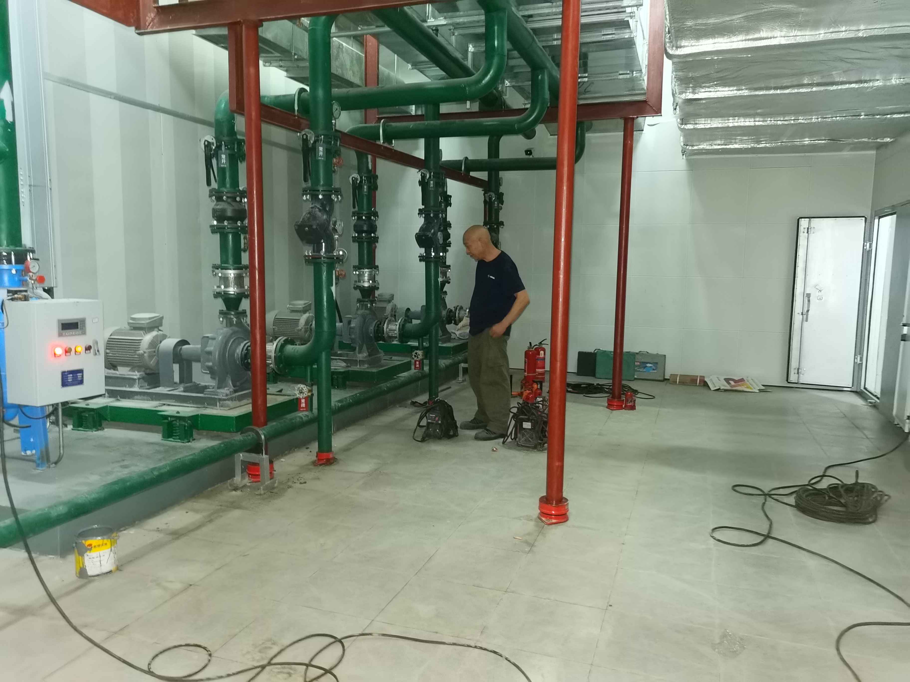 2、24小時(shí)冷卻水泵房一座,水泵9臺(tái)套,熱交換塊4套,進(jìn)出水管4組。影響22層相鄰上下層辦公環(huán)境。