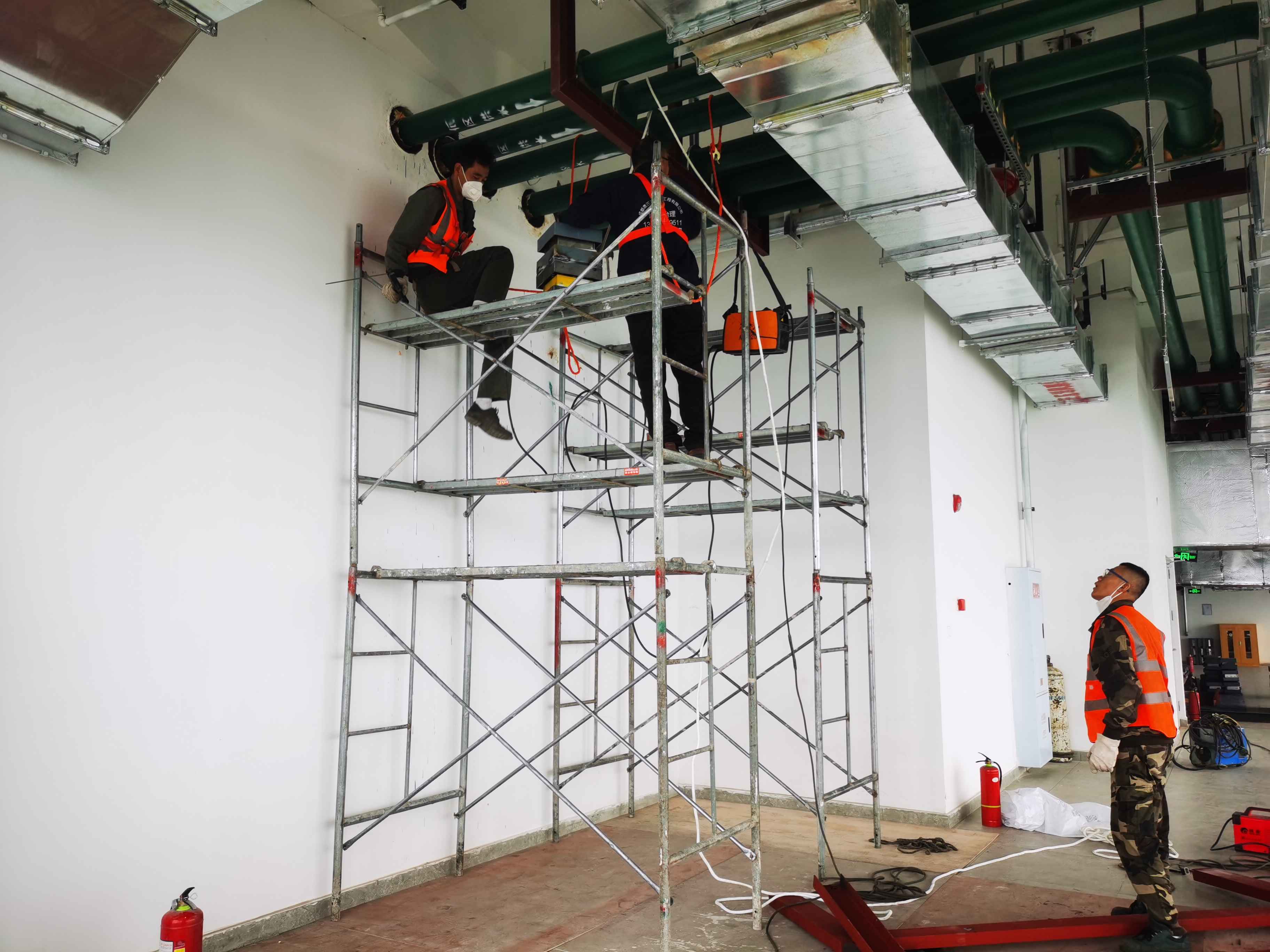 3、在水泵主機(jī)原有底梁與墻體連接部分,采用等離子切割方式,使其不與墻體和地面連接。